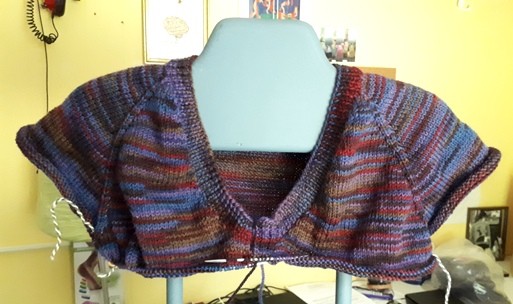 I’m so enamored with this cardigan that I started a second one. (Patons Classic Wool worsted) It’s interfering with the sleeve knitting but it doesn’t take much to do that.
