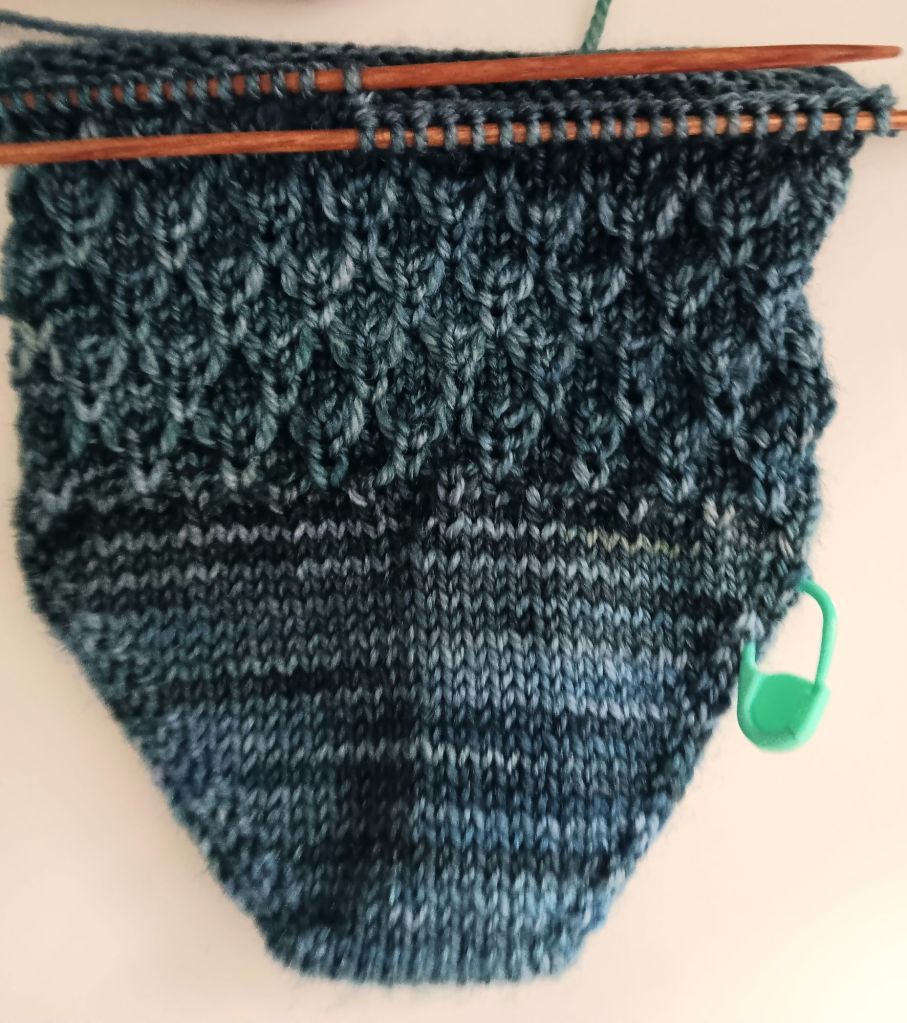 I finished my rendition of the Mermaid Avenue Socks by Summer Lee. I loved the stitch pattern fish scales. I didn’t knit these socks according to the pattern. I knit them toe up with a short row heel, so except for the scales, they aren’t really the same socks.