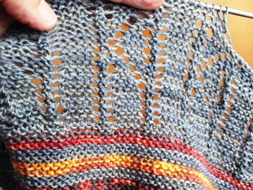 Working row + comfort row OR work on every row. Where do you stand on this important question? Do you like a comfort row, worked quite often in purl, where you don’t have to think about a stitch pattern? I do but sometimes it’s not the best way to go.