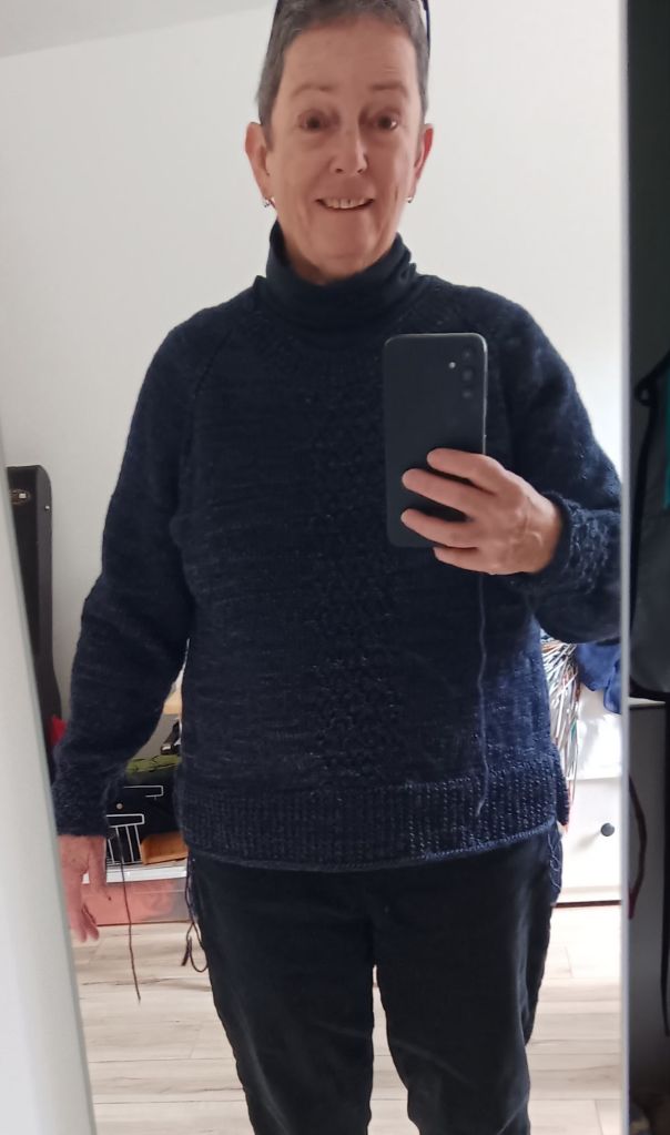 At the bottom of the pullover, I cast off the ribbing with the Icelandic Cast Off. I cast off quite tightly if I’m not paying attention. I thought this might work better but it’s a little wavy. I’m not happy. I may have to rip it back and do a normal cast off after all.