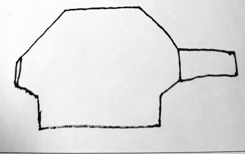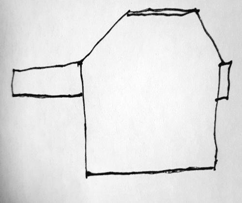 Here is #2. This one has some shaping. The shoulder line is again extended past the body line but then decreases are worked along the sleeve opening. The sleeves would definitely extend the shoulder slope.