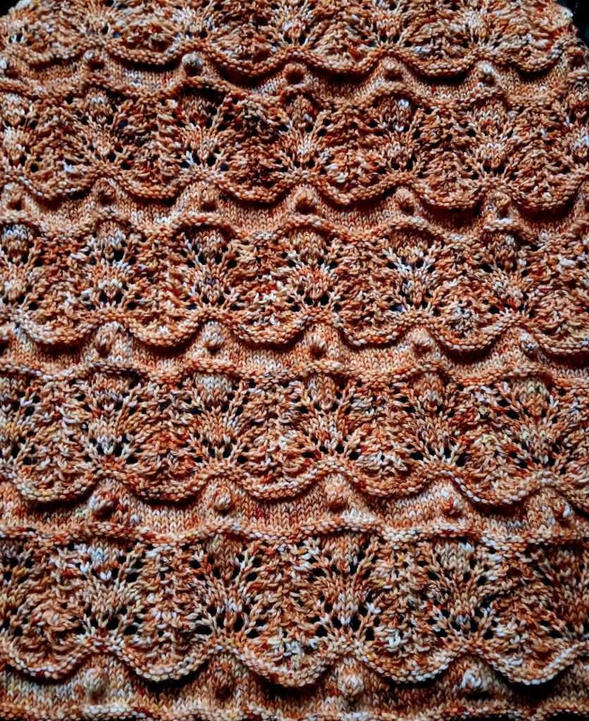 I cast on Winter’s Finery by Romni Hill. I wanted to try some rustic sport weight wool I have from Lichen and Lace. I want to see how it works for a shawl. The pattern is written for fingering weight yarn, so with the sports weight I’m using a 4.5mm needle. What a relief to be using a larger needle. Everything else I’ve been knitting lately has been with 3.25mm needles. I’m really happy to be zipping along with this one.